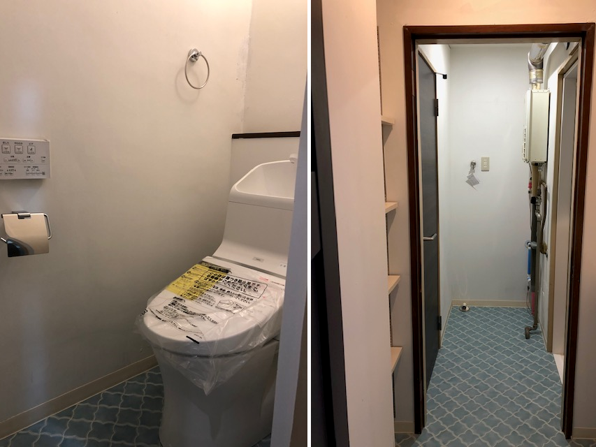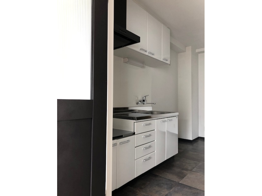 築50年をこえるビルの一室を建物の歴史を感じられる部分を残しつつモダンに改装。天井に建築当時のコンクリート面を使用することで、空間を広くとることができました。和式トイレも時代に合わせて洋式へ変更。シャワールームもついています。